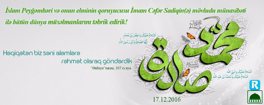 ƏZİZ İZLƏYİCİLƏRİMİZ! MÖVLUD BAYRAMI MÜNASİBƏTİ İLƏ HƏZRƏT PEYĞƏMBƏRİMİZİN (S) VƏ İMAM SADİQİN (Ə) HƏYATI HAQQINDA GENİŞ MƏLUMATLARI SİZƏ ƏRMƏĞAN EDİRİK. BAYRAMINIZ MÜBRAƏK!