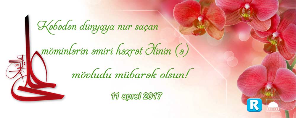 Əziz və hörmətli izləyicilərimiz. 2017-cı il aprel ayının 11-i, on bir imam atası həzrət Əmirəl-Mömin imam Əlinin (ə) mübarək təvəllüdü və atalar günü münasibətilə hamınızı məxsusən ataları təbrik edir uca Allahdan sizlərə bu mübarək günə xatir dünya və axirət səadəti nəsib etməsini diləyirik.